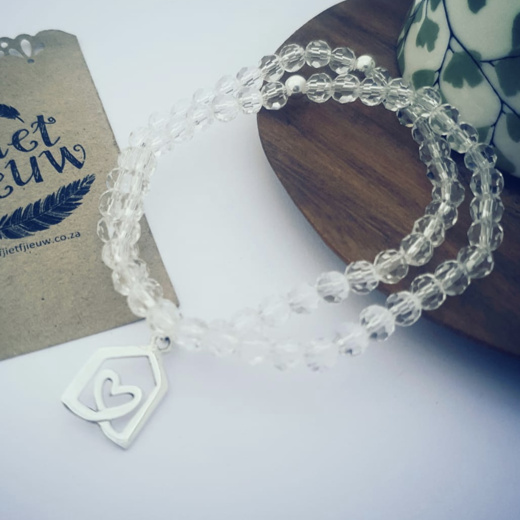 - Black/White 6mm Chinese Crystal Bracelet with a Sterling Silver 15mm House of Love Charm